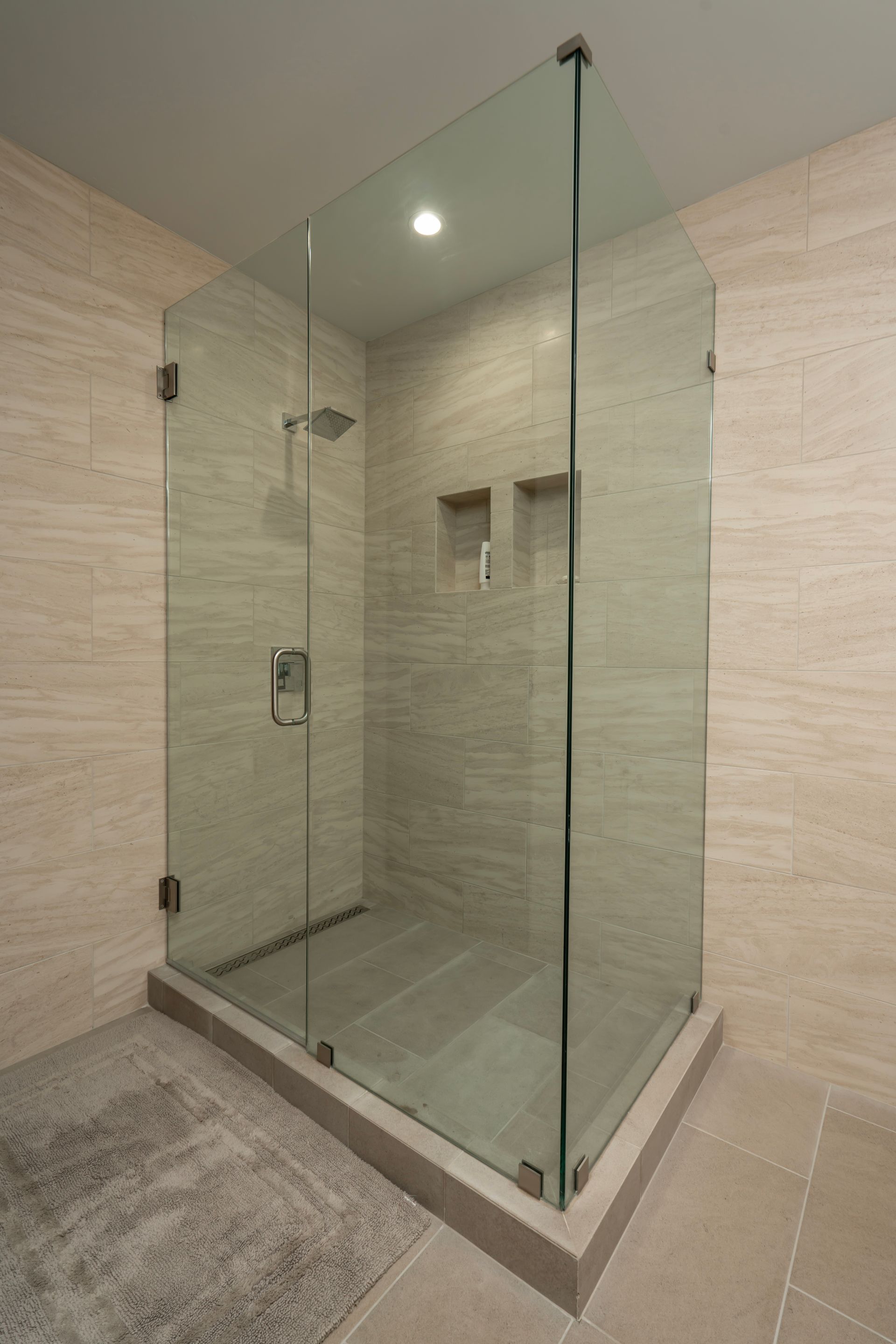 Window and glass railing packages were carefully chosen to take in the gorgeous, relaxing views. Working carefully to preserve the mature existing landscape, the design highlights the outdoor environment and creates a seamless indoor-outdoor experience.